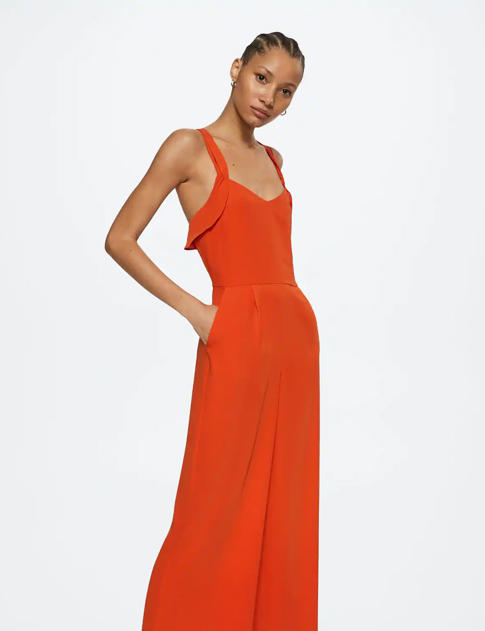 Tejido mezcla de algodón. Tejido texturizado. Diseño largo. Diseño evasé. Cuello envolvente. Manga corta abullonada. Ranura frontal. Detalle de nudo. Cierre con lazo en la espalda.
